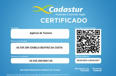 A Golden Flight Trip é uma agência oficialmente registrada no CADASTUR, o sistema do Ministério do Turismo que reconhece empresas sérias e qualificadas no setor de viagens.
